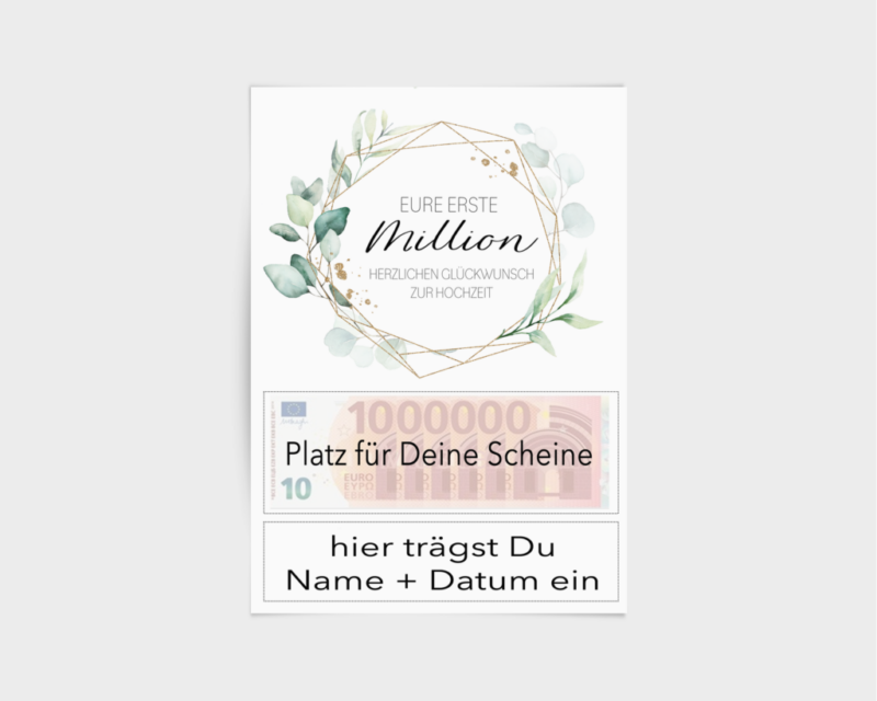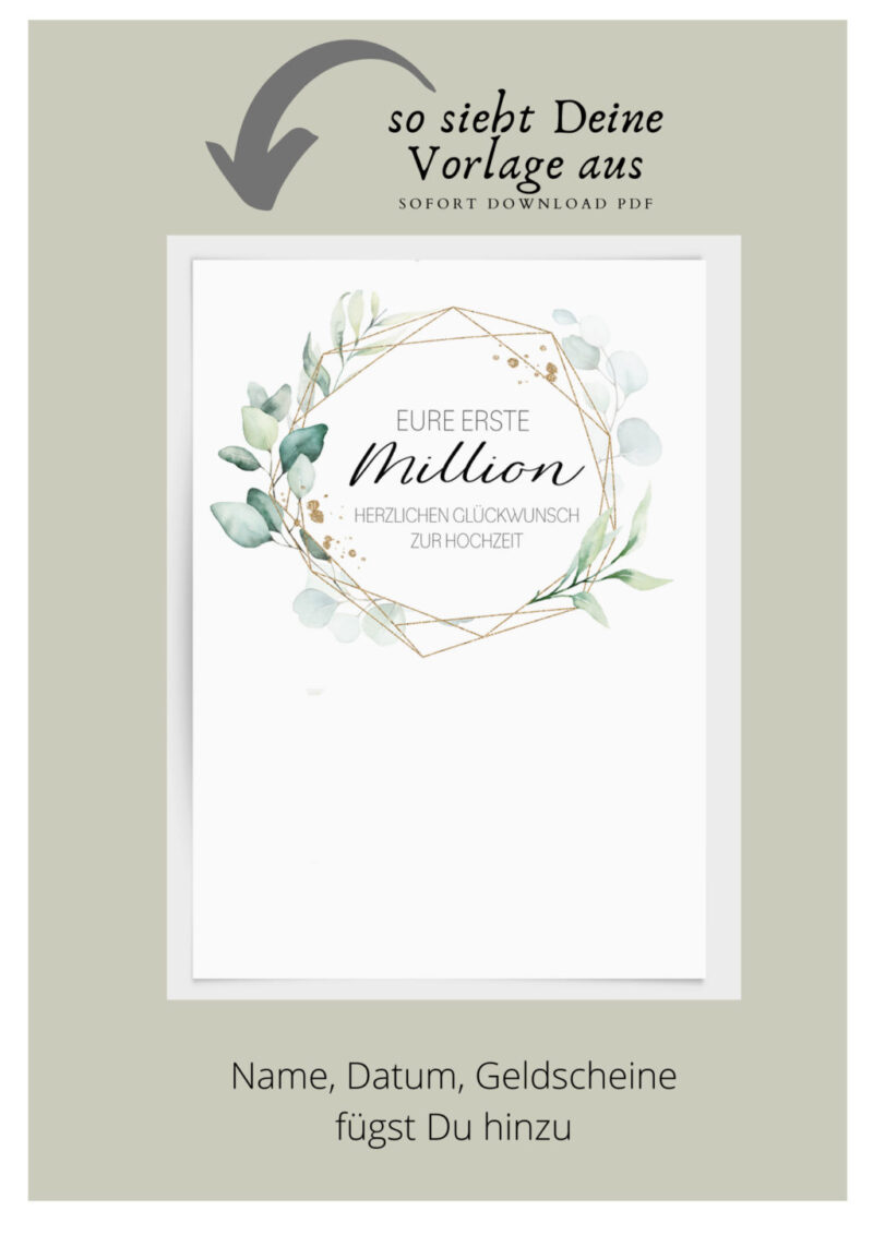Du druckst die Vorlage aus, ergänzt die Namen und das Datum und fügst die Scheine hinzu…. fertig!