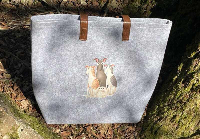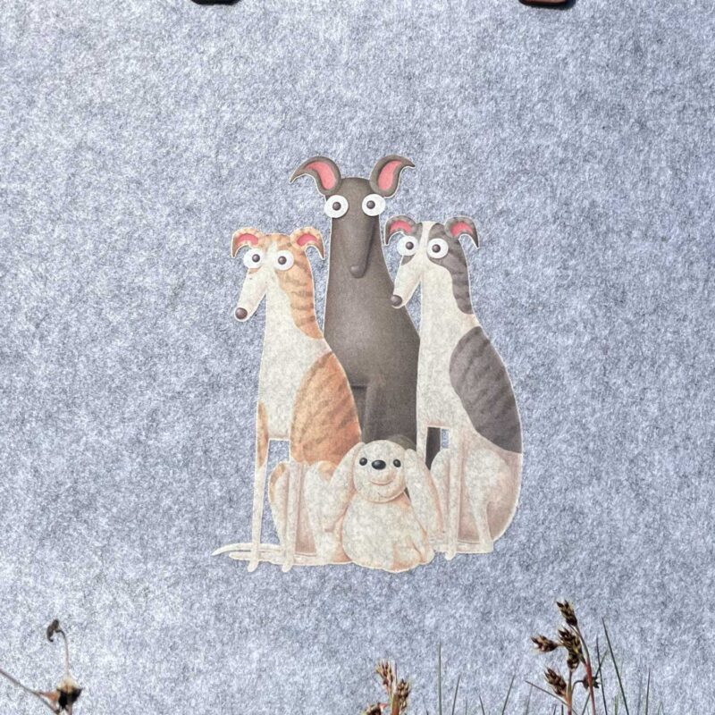 Diese schöne Filz – Tasche in grau-meliert ist ein absoluter Hingucker und das perfekte Accessoire für alle Windhund Liebhaber!