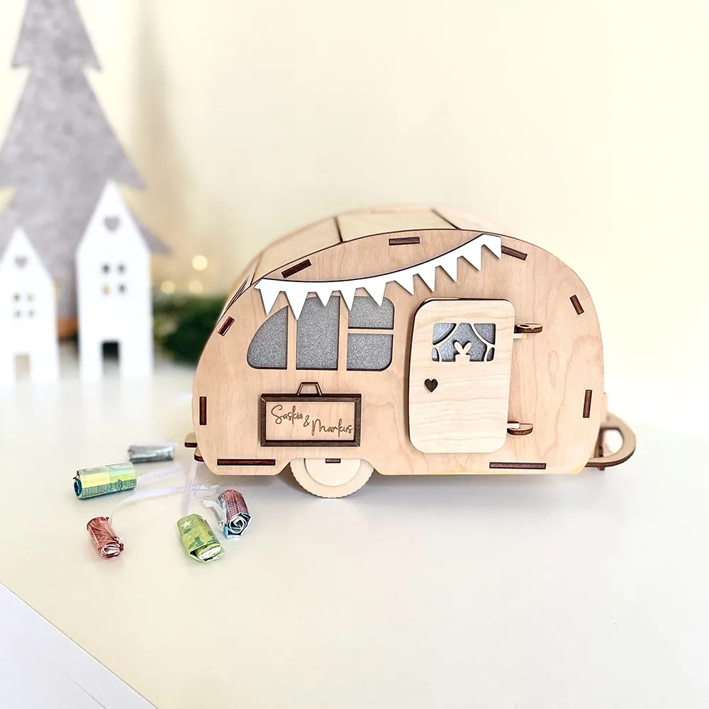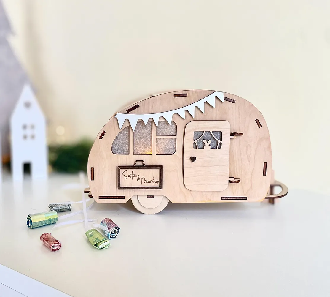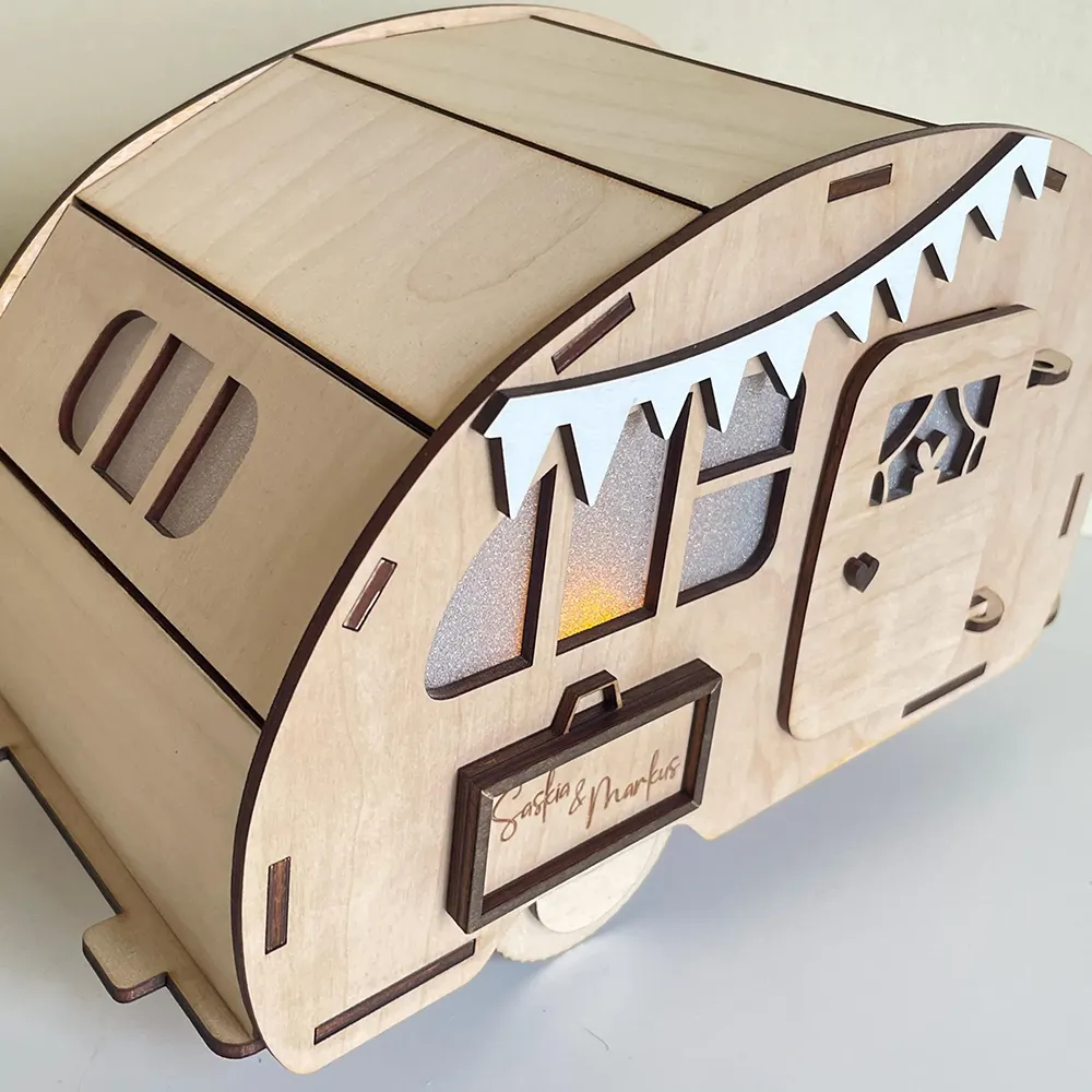 Dieser Miniatur-Wohnwagen ist mehr als nur eine Hochzeitskarte mit Geld – er ist eine besondere Erinnerung an einen unvergesslichen Tag. Perfekt zum Aufstellen als Dekoration und ein echter Blickfang!