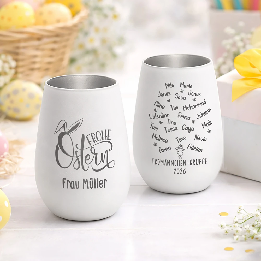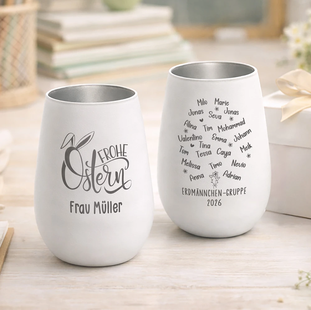 Dieses personalisierte Windlicht ist das perfekte Ostergeschenk von der Klasse für die Lehrerin oder Erzieherin. Auf dem beschichteten Kristallglas vereinen sich ein liebevoller Ostergruß, der Name der Lehrkraft, der Klassenname und bis zu 25 Kindernamen. Handmade graviert, liebevoll verpackt und in 2–3 Werktagen versandbereit. 🐰❤️