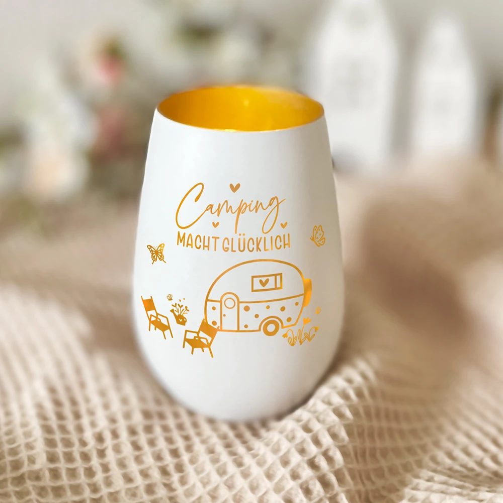 Dieses gravierte Windlicht Camper Van mit Namen ist deine liebevolle Geschenkidee für alle, die ihr Zuhause gerne auf Rädern parken. Die goldene Gravur leuchtet warm, wenn das Licht brennt, und erinnert bei jedem Camping Abend an gemeinsame Touren und kleine Sternstunden unterwegs. ⛺