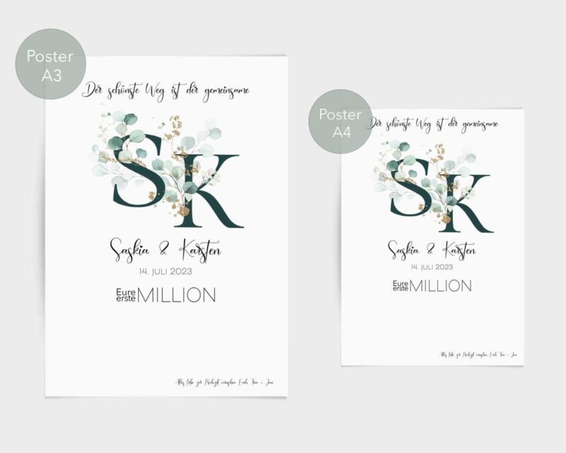 Du kannst das Poster durch Namen und Datum individuell gestalten und ihn perfekt an das Brautpaar anpassen