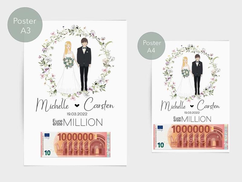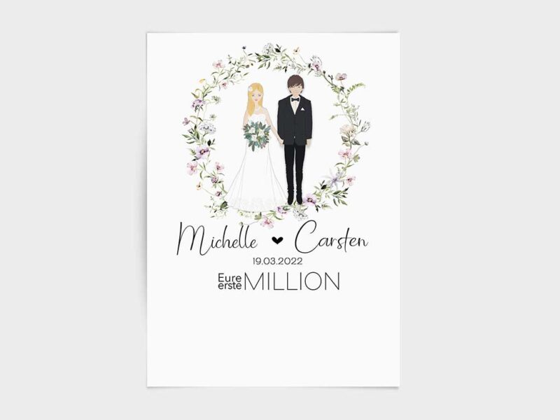 personalisiertes Hochzeitsposter Wildflower „Eure erste Million“