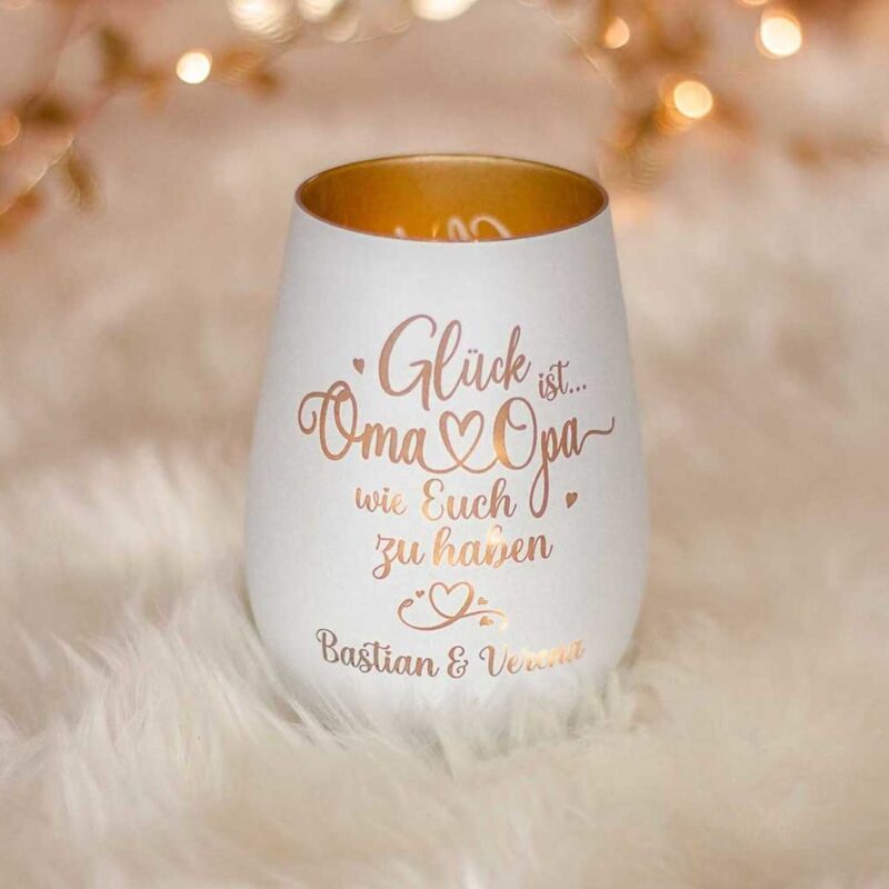 personalisiertes Windlicht: Glück ist Oma und Opa wie euch zu haben