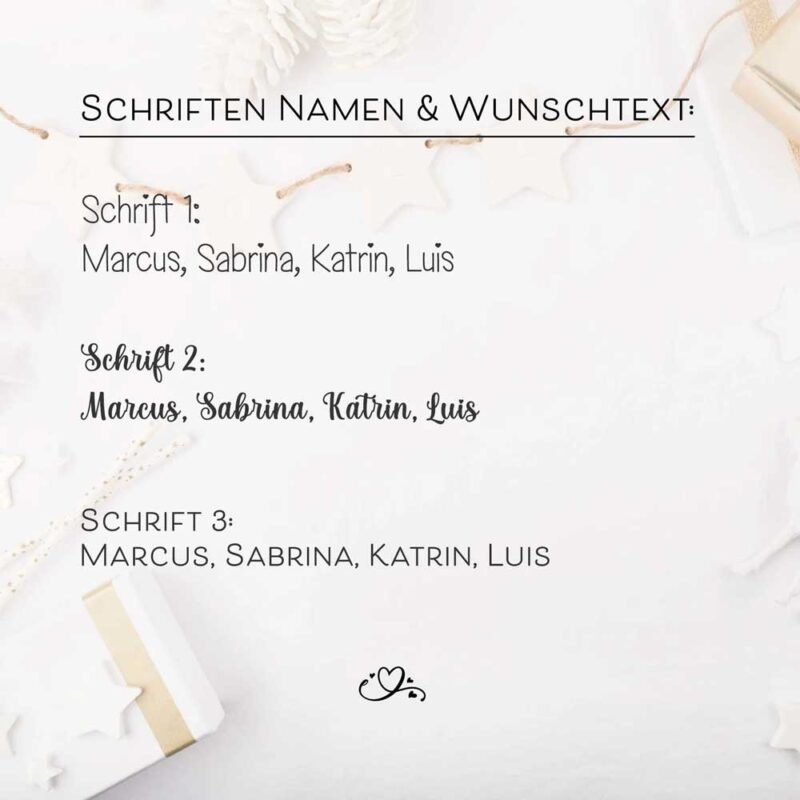 Du kannst die Namen und die Rückseite mit Deiner Wunschschrift und Text personalisieren