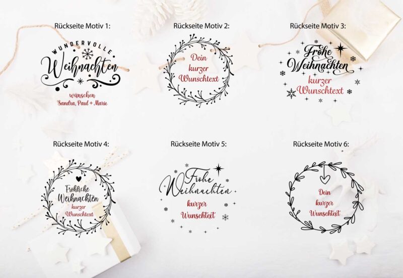 Gerne gravieren wir Deinen kleinen Wunschtext auf die Rückseite, wähle dazu aus 6 verschiedenen Motiven Dein Lieblingsmotiv