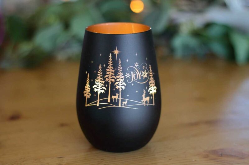 Das Windlicht besteht aus Kristallglas und ist hochwertig graviert