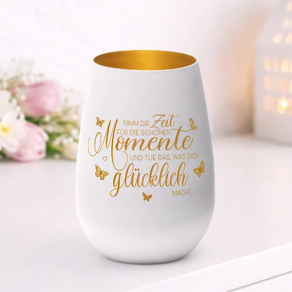 personalisiere Dein Windlicht mit einer Gravur auf der Rückseite
